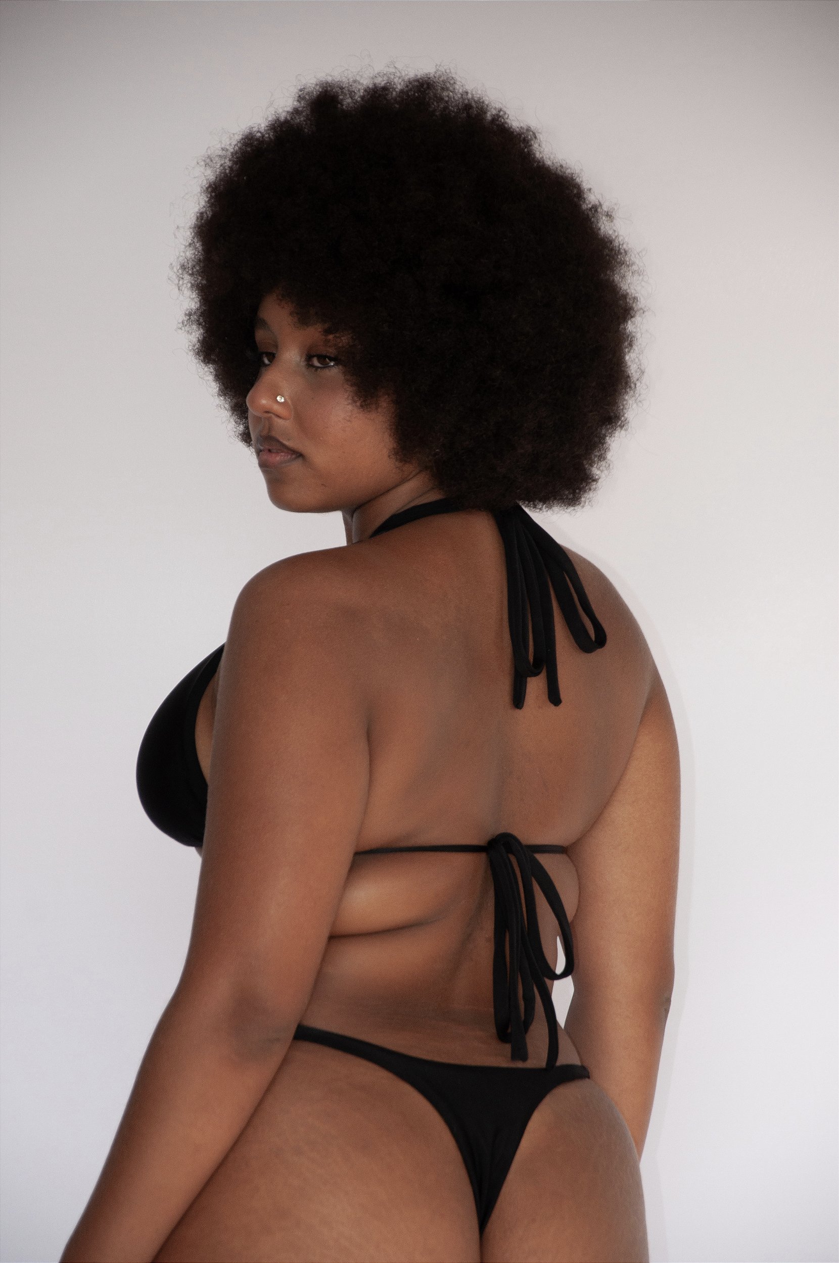 Modelo com biquini preto veste G